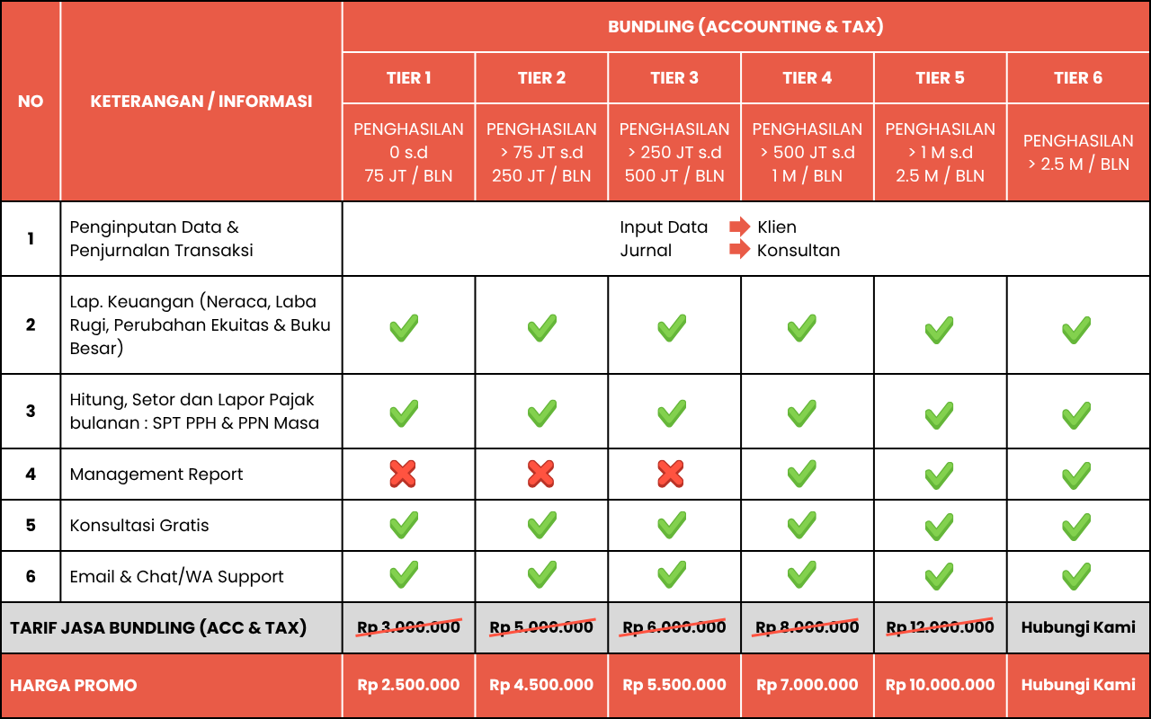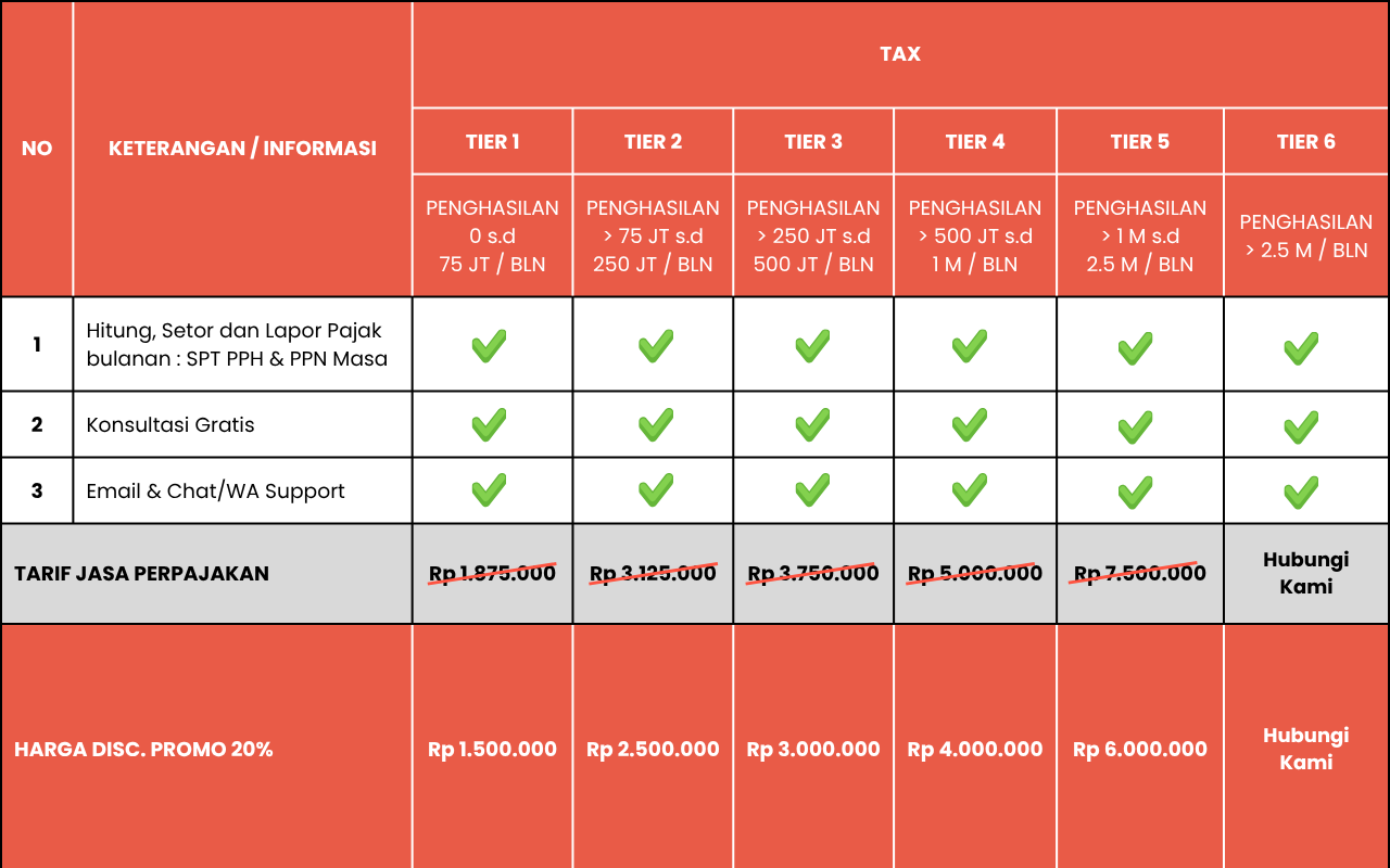 Kita juga coba untuk ngertiin kebutuhan kamu, karena ya memang peran kami sebagai konsultan, bukan robot. Kami banyak sekali nemuin Klien yang ga tau harus ngapain dan ga tau apa yang harus dibenerin (karena belum paham dan kurang referensi). Tapi disini, bareng-bareng kita mau jadi konsultan yang juga mengedukasi klien-kliennya supaya aware dan punya knowledge soal perpajakan. (biar kalo dapet surat cinta dari kantor pajak ga panik) 😛